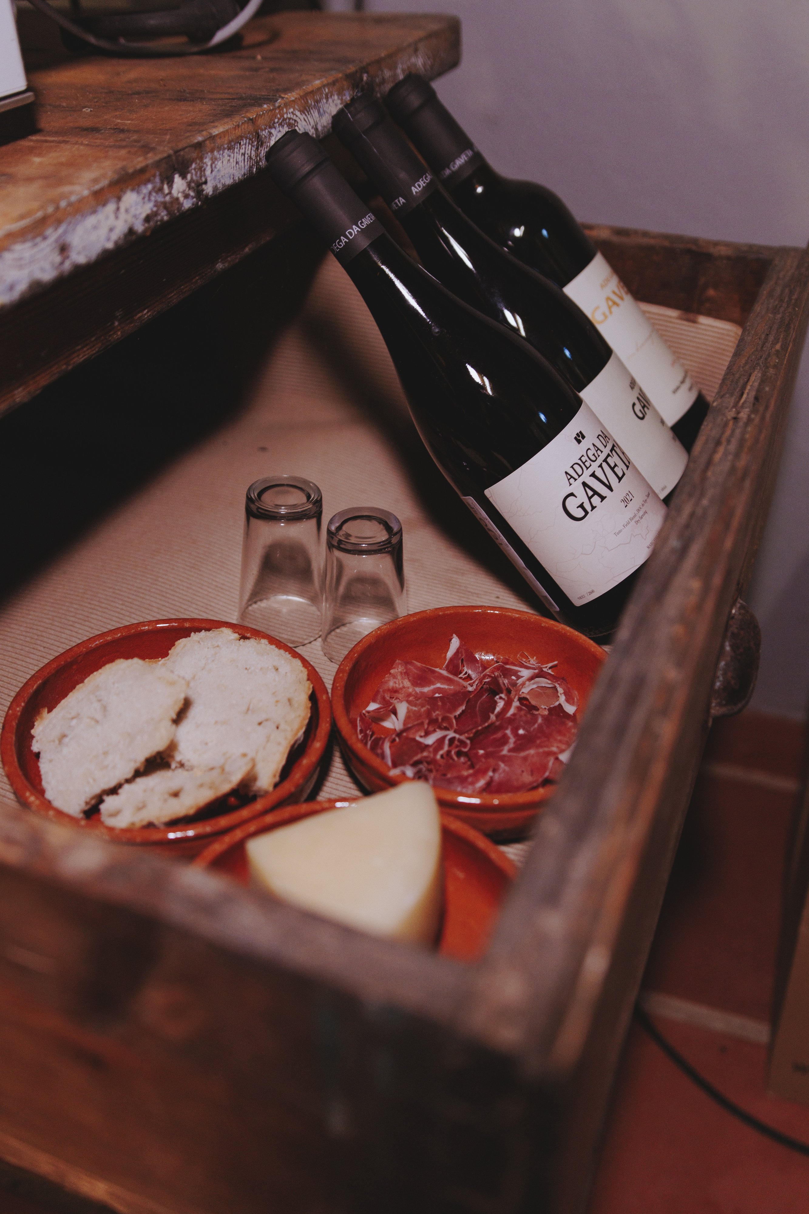 A prova de três vinhos realiza-se no interior da adega, permitindo uma imersão no ambiente real do local. Durante a degustação, são explicados os métodos de produção, desde as diferenças entre a vinificação de vinhos brancos e tintos até às decisões práticas que influenciam o perfil final de cada referência, enquadradas num estilo de produção de mínima intervenção. As explicações decorrem em simultâneo com a prova, de forma natural e acessível.