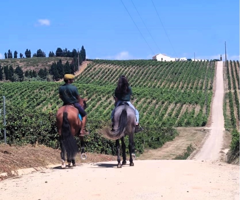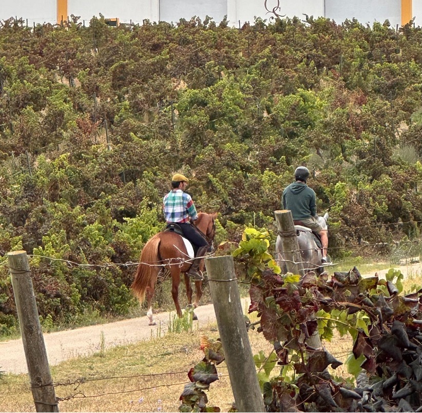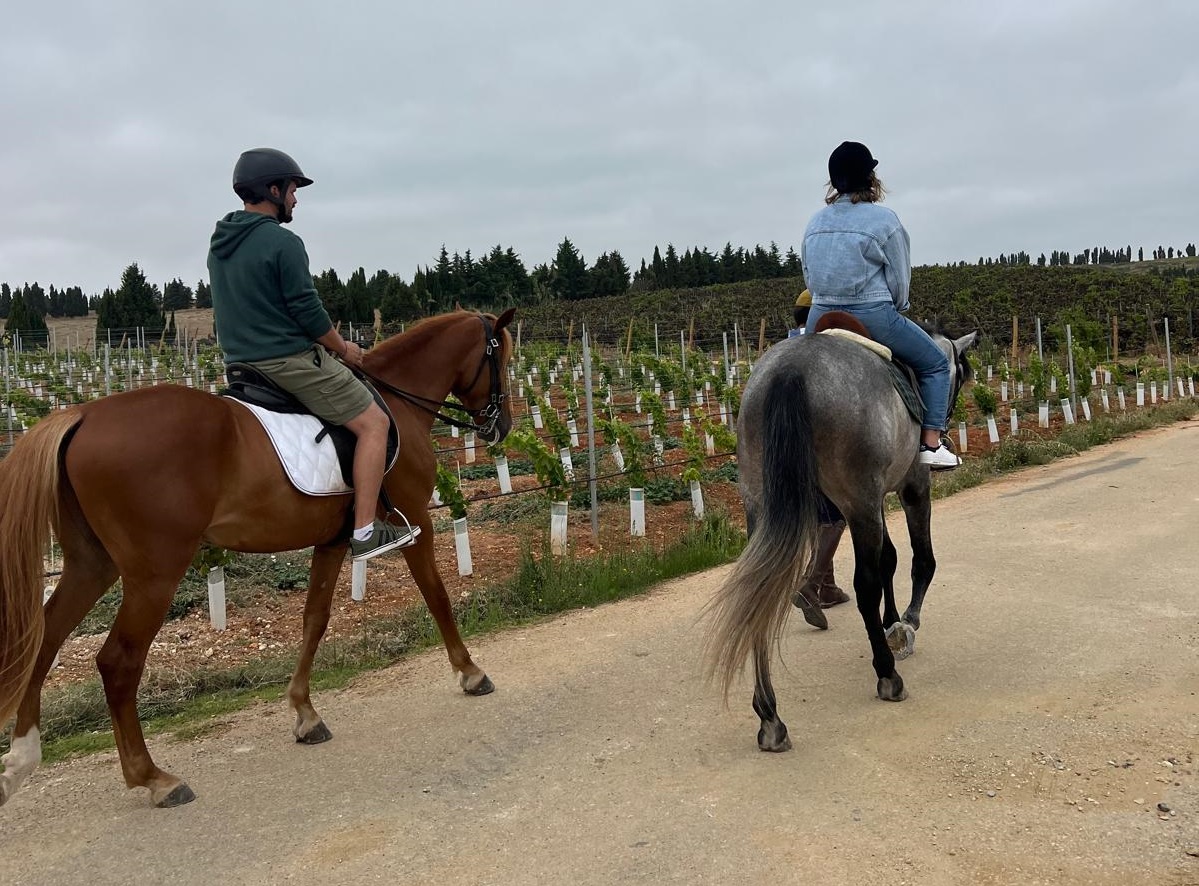 Passeio a cavalo pela Quinta com breve explicação dos cuidados a ter, descrição das castas e dos solos ao longo do percurso.