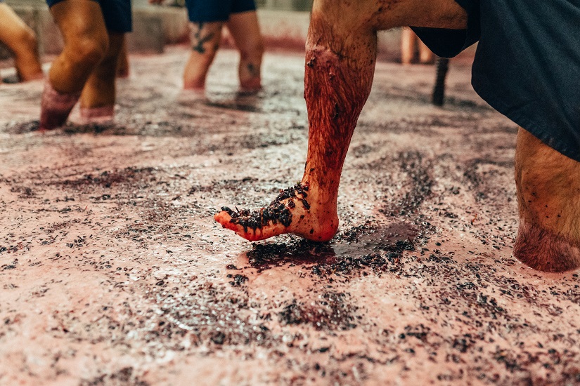Depois da visita guiada e da prova de vinhos os clientes são autorizados a entrar no lagar para pisarem as uvas como manda a tradição. Facultamos calções para o decurso da atividade assim como zona de vestiário para os clientes se trocarem. Os clientes levarão consigo a t-shirt oficial da vindima do ano em curso.