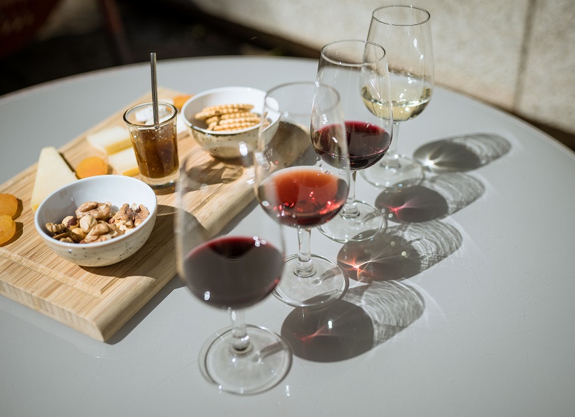 As bebidas incluídas são água mineral, refrigerantes, vinhos Quinta da Pacheca Superior Branco e Tinto, Porto Tawny e café.